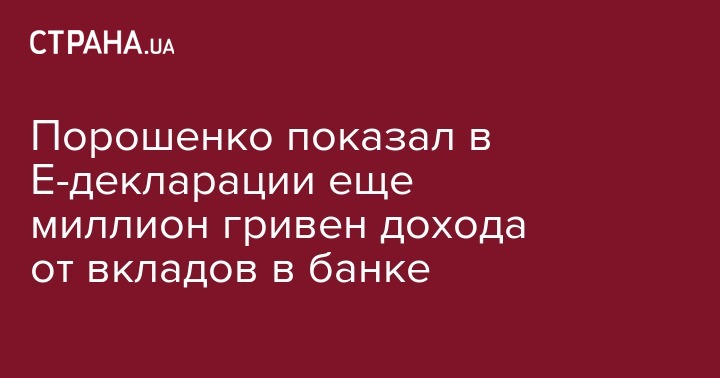 Порошенко показал в Е-декларации еще миллион гривен дохода от вкладов в банке