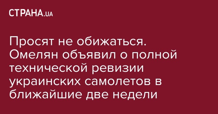 "Мы должны обеспечить надежный безопасный уровень и уровень комфорта. С этой целью в течение ближайших двух недель государственная авиационная служба проведет полную техническую ревизию тех самолетов, которые используются, прежде всего, на регулярных перевозках и прошу никого не обижаться, если некоторые из них будут признаны такими, что не отвечают надлежащему техническому состоянию, если недостатки не будут устранены", - сказал Омелян.