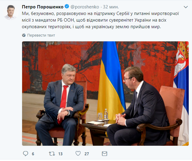 Об этом сообщил президент Петр Порошенко в своем Twitter.