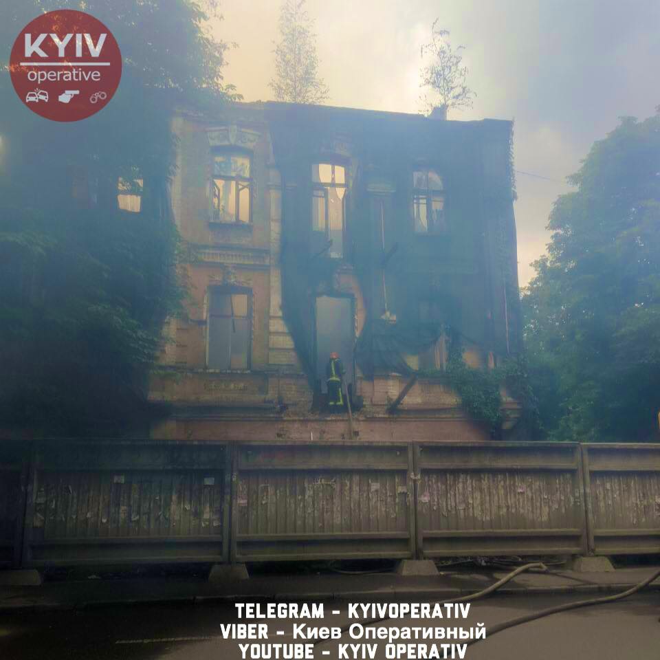 В сети появились фото с места пожара, который вспыхнул сегодня, 3 июля, в Подольском районе Киева. В историческом центре столицы загорелось заброшенное, полуразрушенное трехэтажное здание, которое известно, как дом купца Вертипороха.