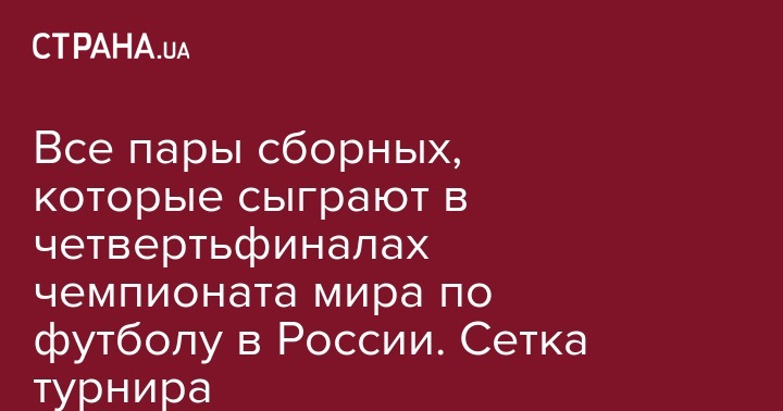 Все пары сборных, которые сыграют в четвертьфиналах чемпионата мира по футболу в России. Сетка турнира