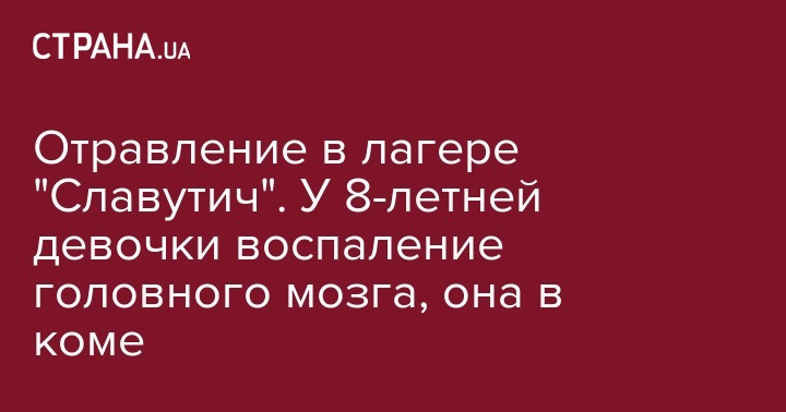 После массового отравления детей в лагере "Славутич" под Киевом, 8-летняя девочка вторые сутки находится в коме, ее жизнедеятельность поддерживается аппаратно. Впрочем, по предварительному диагнозу медиков, у малышки энцефалит (воспаление головного мозга, вызываемое болезнетворными микроорганизмами - Прим.Ред.).