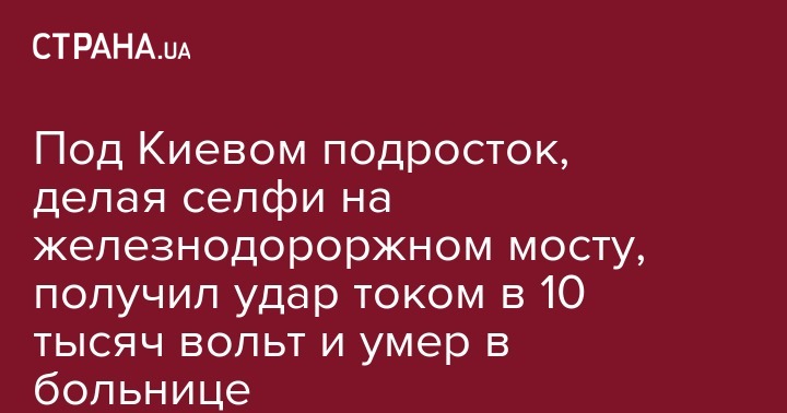 В поселке Барышевка Киевской области 15-летнего парня убило электротоком, когда он пытался сделать селфи на железнодорожном мосту. Об этом сообщает пресс-служба ГосЧС области.