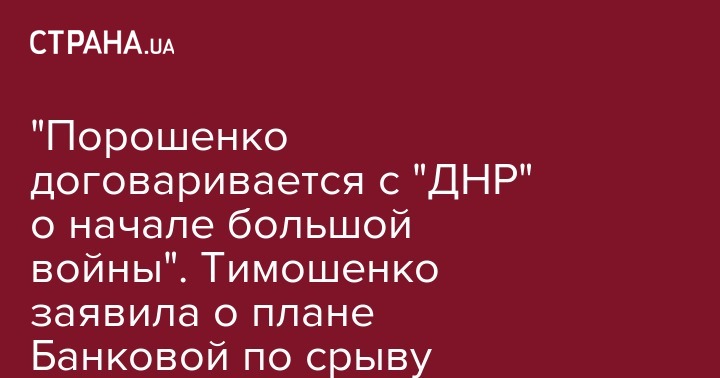 "Это крайне опасный план, которые Петр Порошенко сегодня думает сделать в Украине. Он хочет в принципе выборы президента не проводить. И поэтому сейчас начался глубокий переговорый процесс с теми, кто якобы возглавляет "ЛНР" и "ДНР" - с людьми, которые оккупировали часть Украины и Донбасса. И Порошенко хочет инициировать начало большой войны", - заявила политик.