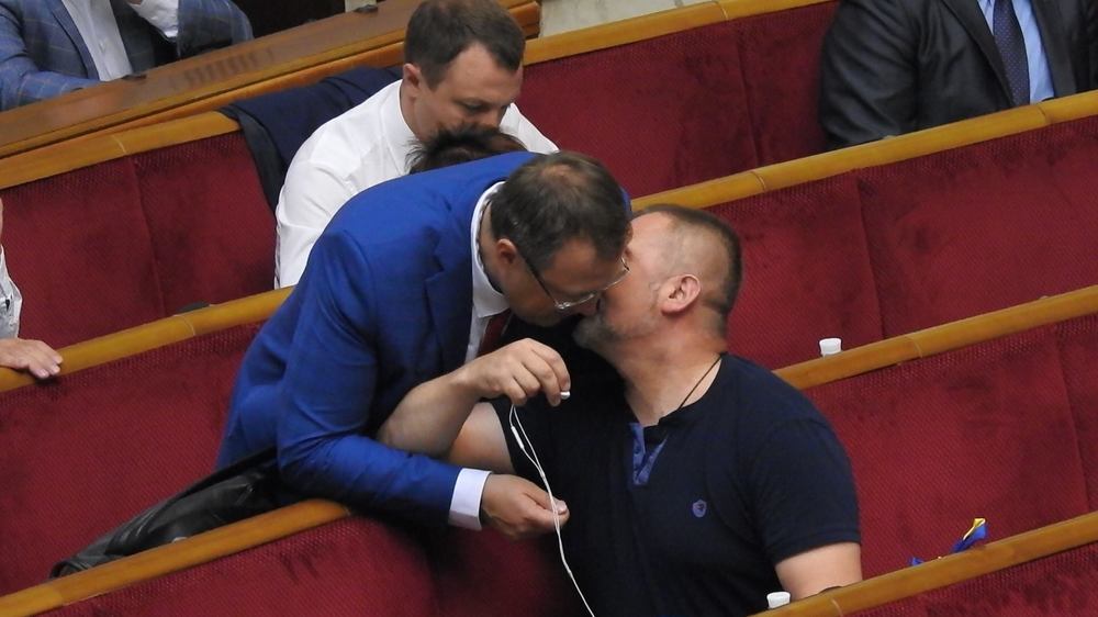 В четверг, 5 июля еа заседании в Верховной Раде нардеп Юрий Береза о чем-то шепнул на ушко своему коллеге по "Народному фронту" Антону Геращенко.