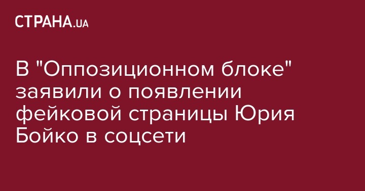 "Оппозиционный блок" обращает внимание пользователей Интернета на появление в сети фейковой страницы сопредседателя партии "Оппозиционный блок", народного депутата Юрия Бойко. (…) Мы обращаемся к пользователям социальных сетей не проявлять активности на данной странице, поскольку никакого отношения ни к "Оппозиционному блоку", ни к Юрию Бойко она не имеет", - сообщает пресс-служба политсилы в четверг.