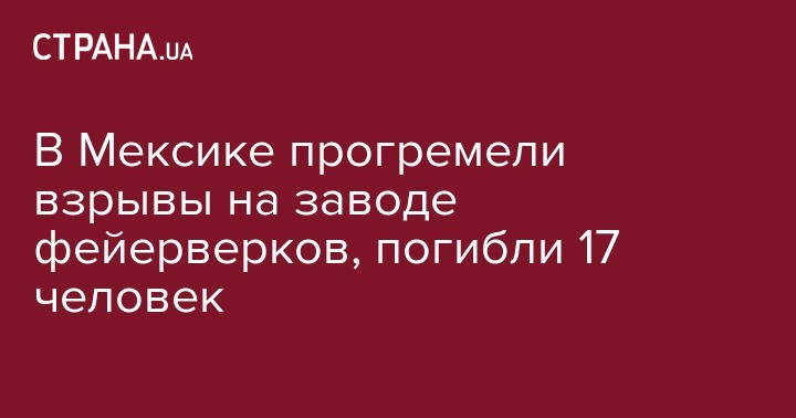 Семнадцать человек погибли и, по крайней мере, 31 получили травмы в результате двух взрывов в мастерских по производству фейерверков в пригороде Мехико, передает в четверг агентство Ассошиэйтед Пресс.