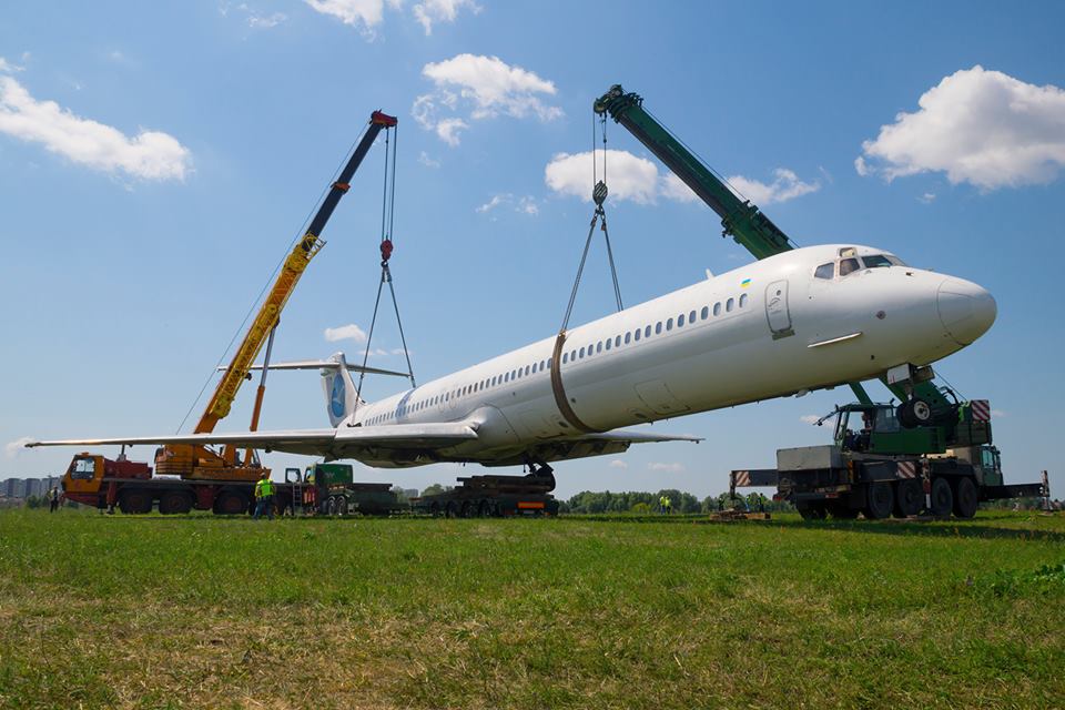 Аварийный самолет MD-83 авиакомпании Bravo, который 14 июня выкатился за взлетно-посадочную полосу, сегодня загрузили на трейлер и транспортировали на специальную площадку.