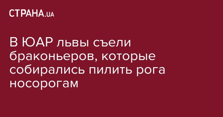 Львы в заповеднике Sibuya неподалеку от города Кентон-он-Си на юге ЮАР растерзали одного или нескольких браконьеров, охотившихся за рогами носорога, сообщил в Facebook владелец заповедника Ник Фокс.