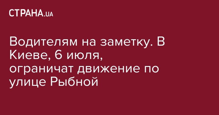 В пятницу, 6 июля, в столице Украины частично ограничат движение автомобильного транспорта по улице Рыбной.