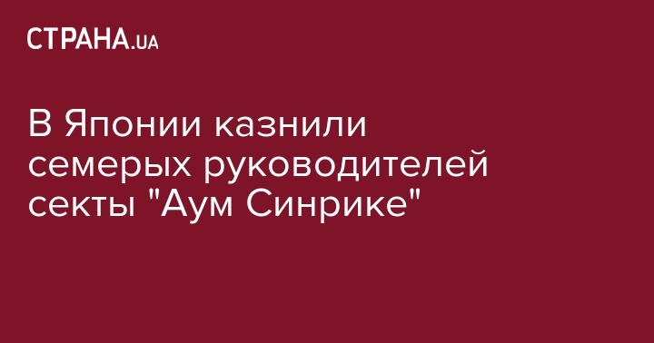 Сегодня, 6 июля, в Японии официально подтвердили казнь верхушки руководства секты "Аум Синрике". Министр юстиции Японии Еко Камикава объявила о приведении в исполнение семи смертных приговоров в отношении руководителей экстремистской секты, включая ее основателя Тидзуо Мацумомто, известного под именем Секо Асахара.