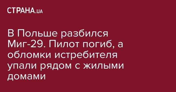 В Польше разбился Миг-29. Пилот погиб, а обломки истребителя упали рядом с жилыми домами