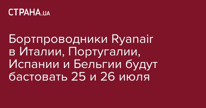 Бортпроводники Ryanair в Италии, Португалии, Испании и Бельгии будут бастовать 25 и 26 июля