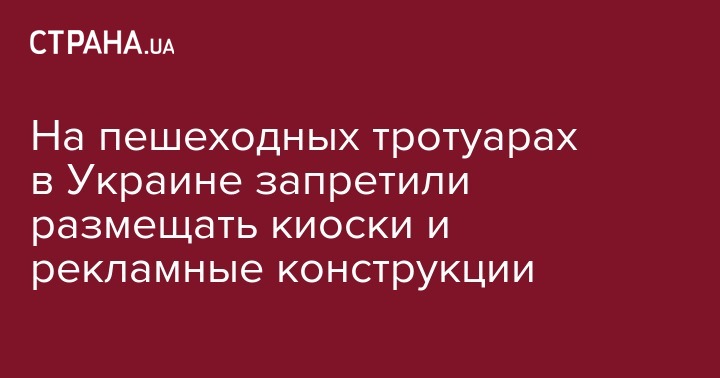 В Украине вводится норма о недопущении установления временных сооружений, рекламных и других конструкций на пешеходных зонах тротуаров при строительстве, реконструкции или капитальном ремонте улиц и дорог.