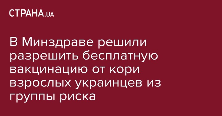 В Минздраве решили разрешить бесплатную вакцинацию от кори взрослых украинцев из группы риска