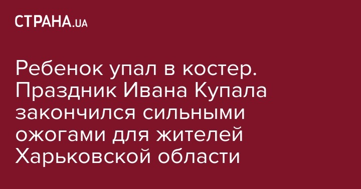 По данным "Интерфакс-Украина", 5-летний ребенок упал в костер во время празднования Ивана Купала, когда взрослые отвлеклись. Ребенок находится в критическом состоянии.