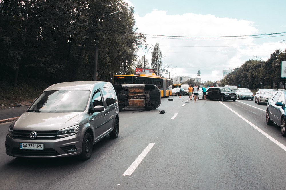 В Киеве дама за рулем устроила тройное ДТП, кувыркаясь по улице на Audi
