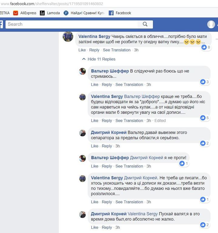 Опубликованное в сети видео вызвало большой общественный резонанс и в комментариях к нему стали появляться призывы к расправе над переселенцем с Донбасса.