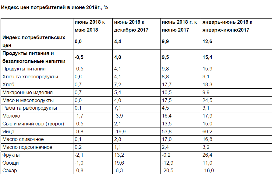 Базовая инфляция в июне-2018 также снизилась до нуля с 0,2% в мае и 0,6% – в апреле, а в годовом измерении составила 9% по сравнению с 9,3% по итогам мая.