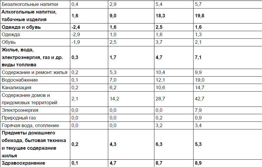 Рост цен (тарифов) на жилье, воду, электроэнергию, газ и другие виды топлива на 0,3% произошел преимущественно за счет повышения тарифов на 2,1% на содержание домов и придомовых территорий, оплаты аренды жилья - на 0,9%.
