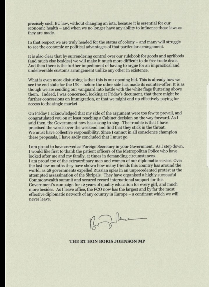 Борис Джонсон опубликовал заявление в связи со своей отставкой с поста министра иностранных дел Великобритании.
