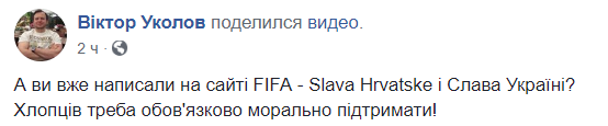 "А вы уже написали на сайте FIFA - Slava Hrvatske i Слава Украине? Ребят надо обязательно морально поддержать!", - призывает "мочить" страницу Федерации и поддерживающий Порошенко политтехнолог Виктор Уколов.