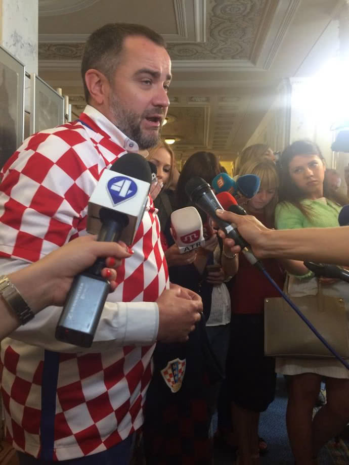 Павелко пришел в Раду в футболке сборной Хорватии (но не в футболке Домагоя Виды или Вукоевича, а в футболке футболиста Ракитича).