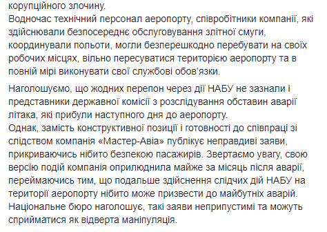 НАБУ называет заявления "Мастер-Авиа" неправдивыми и манипулятивными.