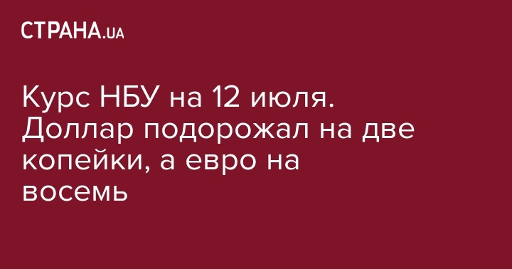 Курс НБУ на 12 июля. Доллар подорожал на две копейки, а евро на восемь