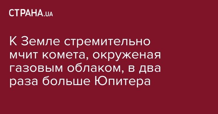К Земле стремительно мчит комета, окруженая газовым облаком, в два раза больше Юпитера