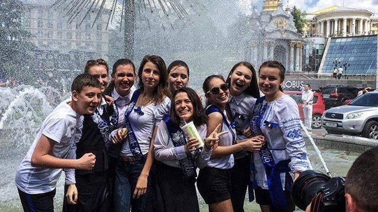 Сегодня для большинства школьников Украины прозвучал последний звонок. Выпускники, которые закончили 11 класс, по негласной традиции после школьной линейки идут нарядные в центр города и купаются в фонтанах.