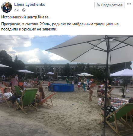 "Прекрасно, я считаю. Жаль, редиску по майданным традициям не посадили и хрюшек не завезли", - иронизирует адвокат Елена Лешенко на своей странице в Facebook.