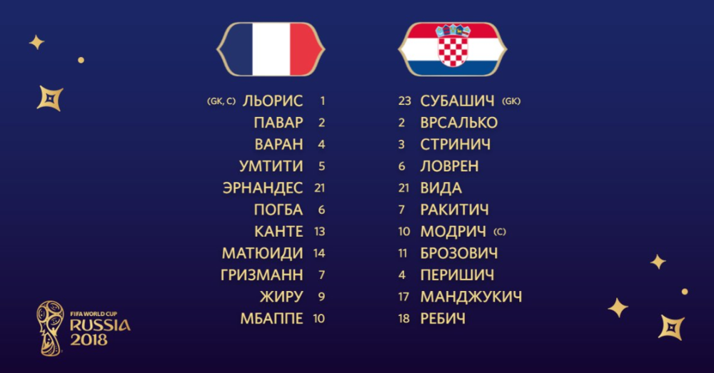 Фото: Финалисты ЧМ-2018 сборные Хорватии и Франции/fifa.com