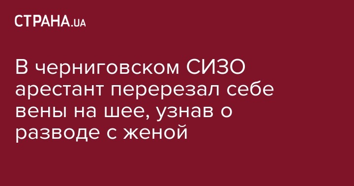 "Установлено, что около 5:30 утра в камере Государственного учреждения "Черниговский следственный изолятор" обнаружен осужденный с имеющимися телесными повреждениями в виде порезов в области шеи. Медицинские работники, прибывшие по вызову в учреждение, констатировали смерть заключенного. Среди прочего установлено, что осужденному за убийство к 14 годам лишения свободы накануне жена сообщила о том, что начинает процедуру развода, поэтому он находился в подавленном состоянии", - сказано в сообщении.