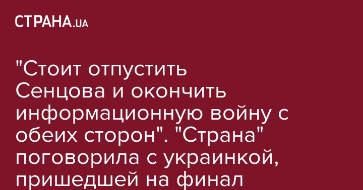 Также девушка уверена, что РФ должна отпустить политзаключенных, в том числе Олега Сенцова: "Стоит отпустить всех и окончить информационную войну. В Украине показывают, что в России все плохо, в РФ - что в Украине плохо. На самом деле это не так и не так. Пока это прекращать и налаживать отношения".