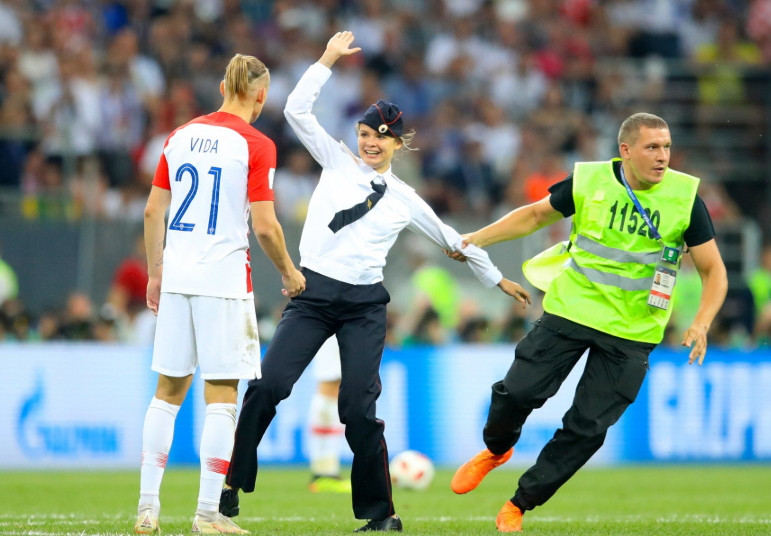 Переодетая в милиционера активистка Pussy Riot выбежала на поле Фото: meduza.io