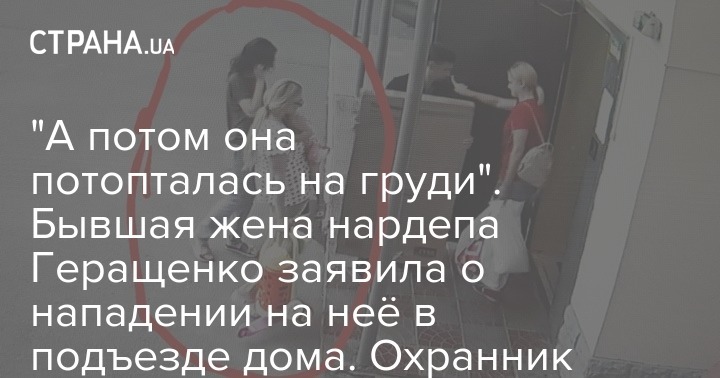 "А потом она потопталась на груди". Бывшая жена нардепа Геращенко заявила о нападении на неё в подъезде дома. Охранник утверждает, что это она его побила