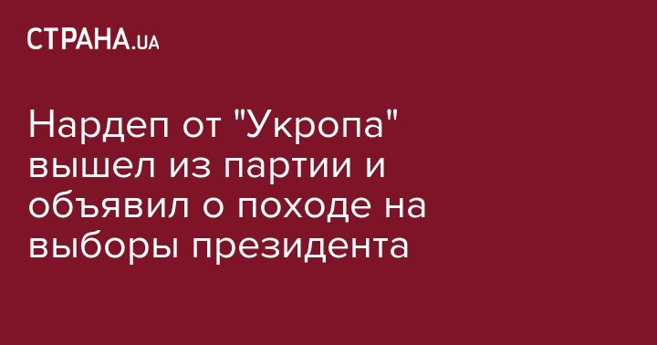 "Сегодня знаменательный день в моей политической карьере. Я решил выйти из партии "УКРОП" и самостоятельно бороться за пост Президента Украины", - написал нардеп.