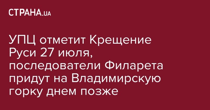 УПЦ отметит Крещение Руси 27 июля, последователи Филарета придут на Владимирскую горку днем позже