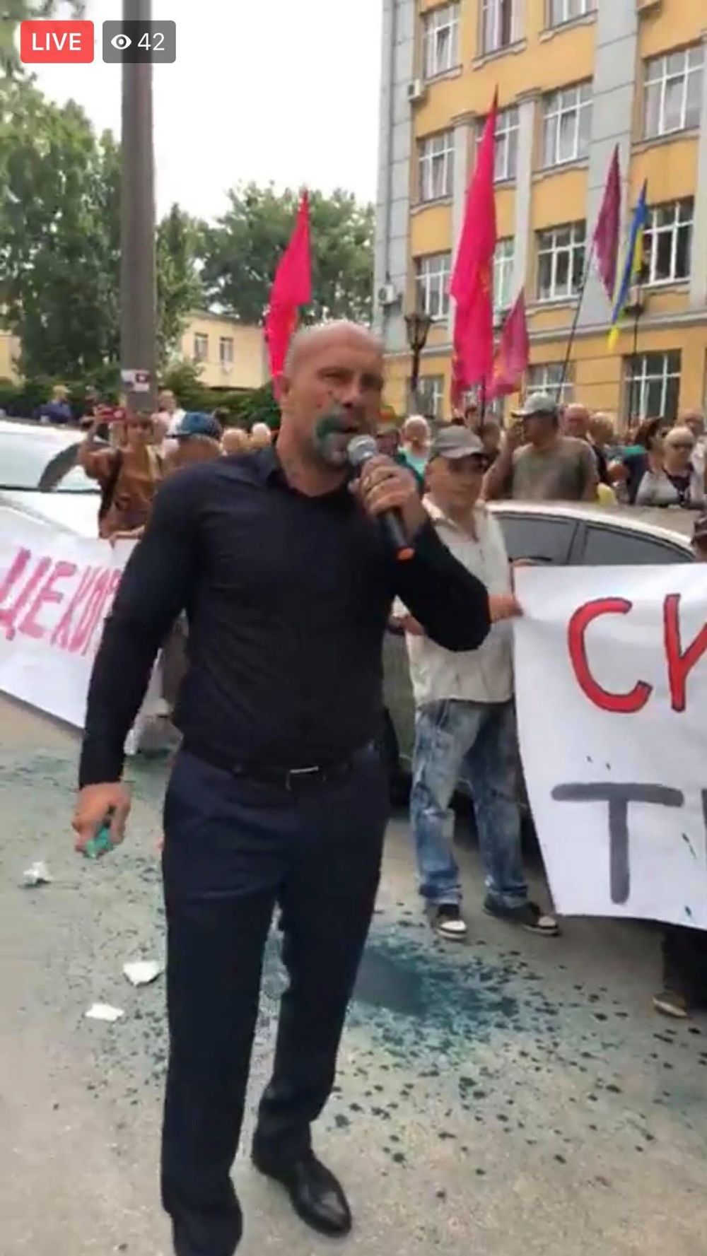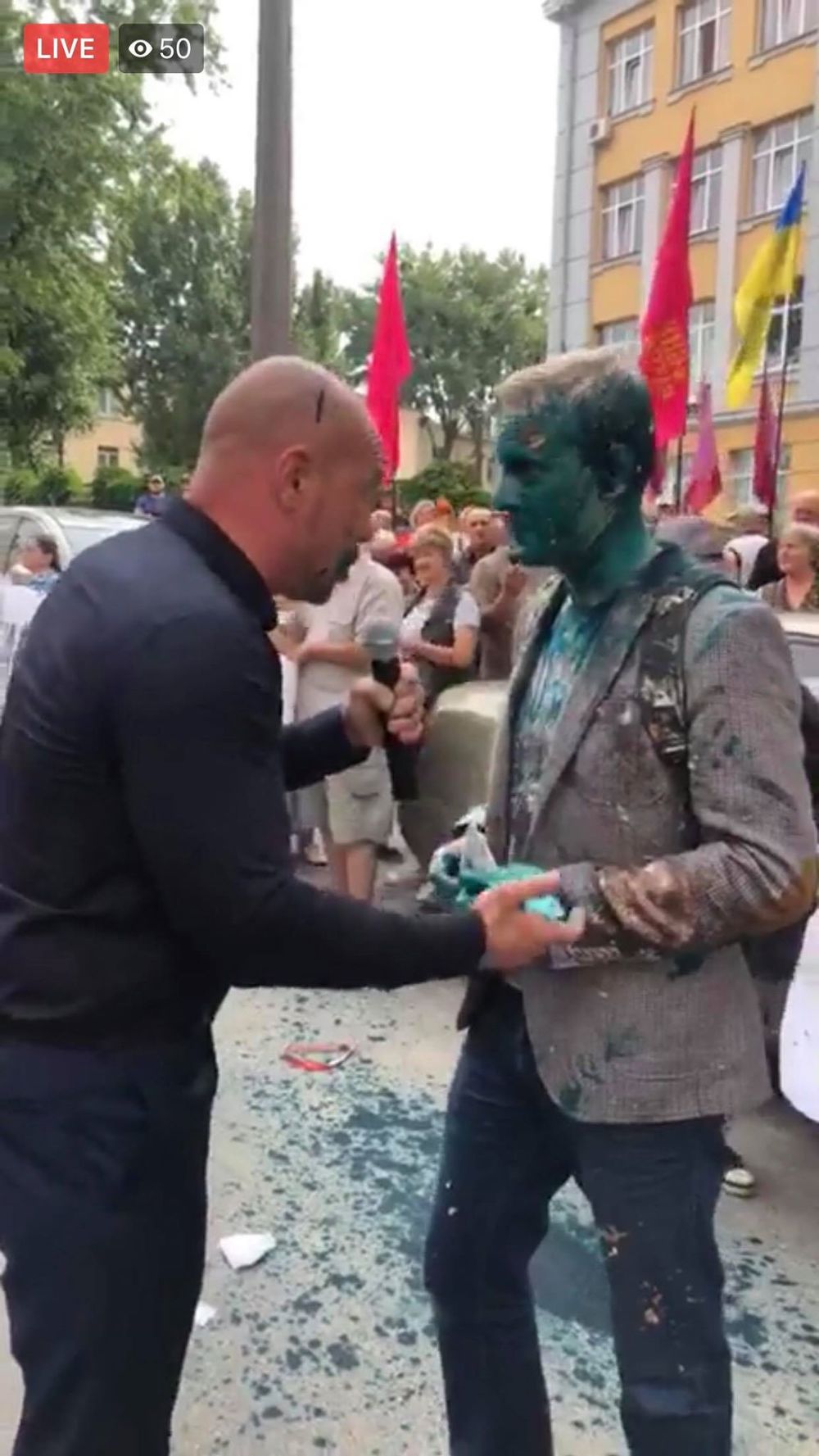 И пролилась зеленка. Кива и Шабунин устроили митинговый баттл под зданием САП