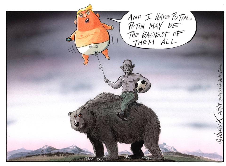 Газета The Washington Post, которое открыто занимает жесткую антитрамповскую позицию, на следующей день после саммита в Хельсинки опубликовало серию критических статей о действиях главы Белого дома, при этом редакционную статью об этой встрече издание озаглавило "Трамп только что вступил в сговор с Россией. Открыто".