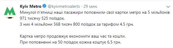 "Карточка метро продолжает экономить ваше время и средства. При пополнении на 50 поездок каждая стоит 6,5 гривны", - подытожили в пресс-службе метро.
