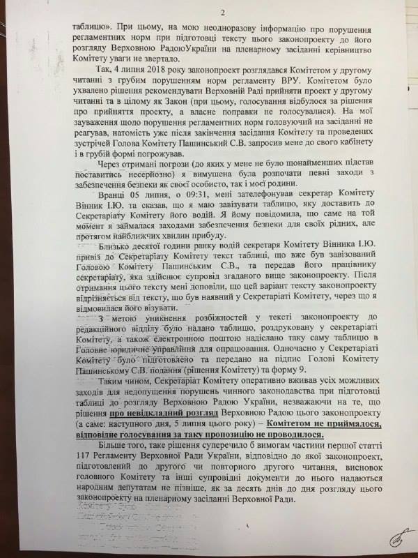 Она пишет, что отнеслась к угрозам серьезно и начала обеспечивать безопасность своих близких. Тем временем водитель зама Пашинского - нардепа Винника - привез и передал в секретариат сравнительную таблица к закону за подписью Пашинского.