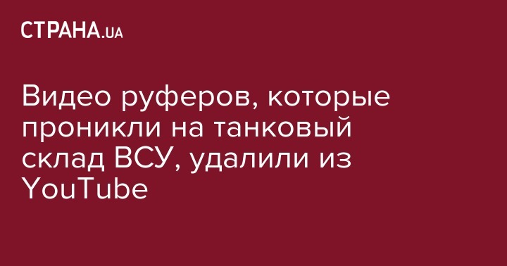 Видео двоих харьковских руферов, которые проникли на территорию танкового склада ВСУ с сотнями списанных и десятками новых танков, удалено с YouTube-аккаунта блогеров. Причины удаления не указаны.