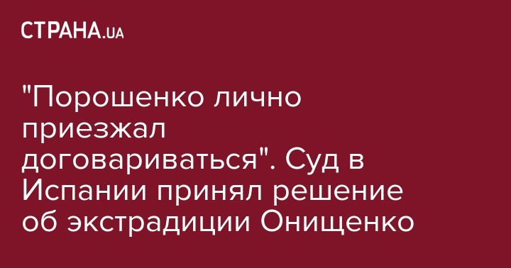 Суд Испании принял решение об экстрадиции в Украину беглого нардепа Александра Онищенко. Об этом автор книги "Петр Пятый" рассказал в интервью "Стране" "Петр Пятый - подстольная книга у Порошенко"