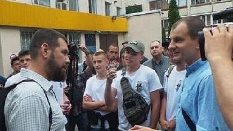 На видео, опубликованном в Сети, видно, первым драку затеял лидер радикалов. Бурдыга в ответ бросился на него - одновременно на журналиста толпой накинулись сторонники Карася.