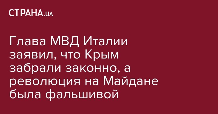 Министр внутренних дел Италии и глава правой партии "Лига" Маттео Сальвини заявил, что Россия законно забрала украинский Крым, а революция в Украине является "фальшивой".