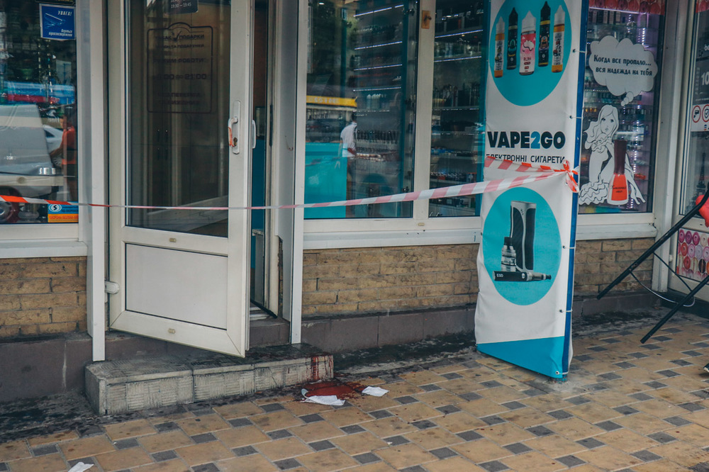 Продавец шаурмы вышел из МАФа и ударил одного из молодых людей ножом. Женщины уверяют, что нож был очень большой и напоминал мачете. Парень истекал кровью, удар пришелся в руку. Прохожие вызвали полицию и "скорую помощь".