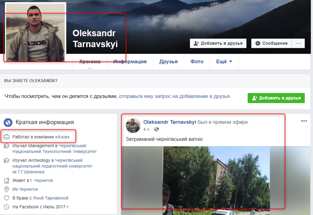 Соответствующий стрим в Facebook разместил "азовец" Александр Тарнавский. Позже он удалил это видео, но оно осталось в Сети.
