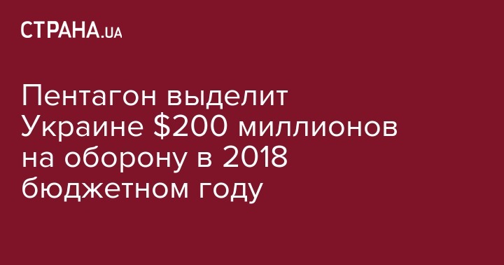 "Соединенные Штаты приняли решение о выделении Украине $200 млн на цели усиления безопасности и обороны в 2018 бюджетном году. Указанные средства будут направлены на предоставление нашей стране военной техники и снаряжения, другого оборудования и услуг военного назначения, логистического обеспечения и подготовку Вооруженных сил Украины", – говорится в сообщении на странице посольства в Facebook в пятницу вечером.